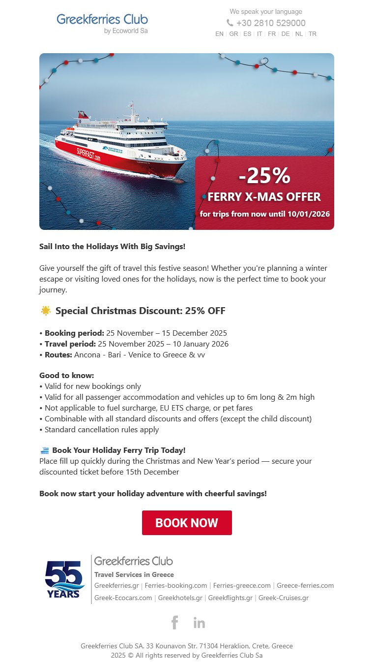 SUPERFAST FERRIES : FERRY X-MAS OFFER: -25%