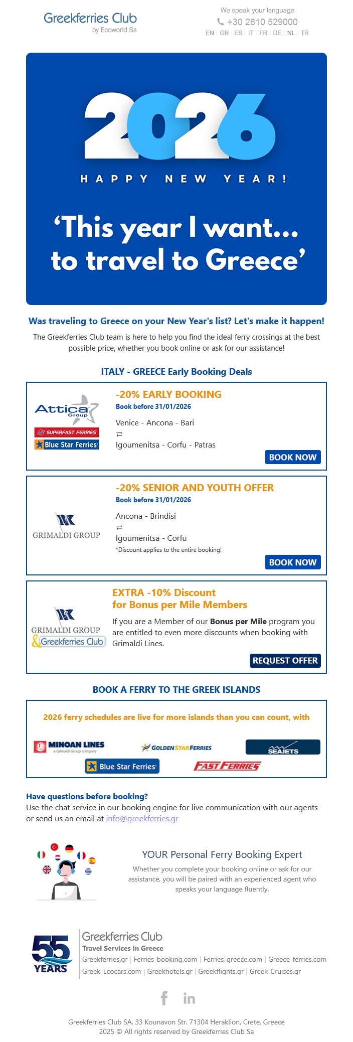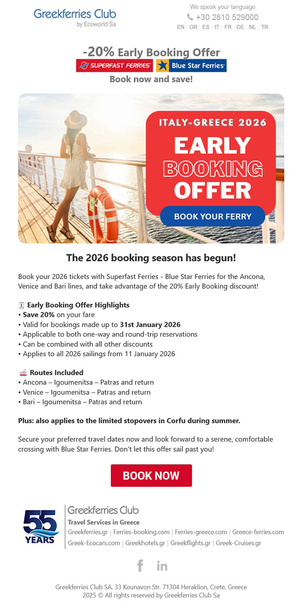 -20% Early Booking Offer 2026 - Superfast Ferries - Blue Star Ferries