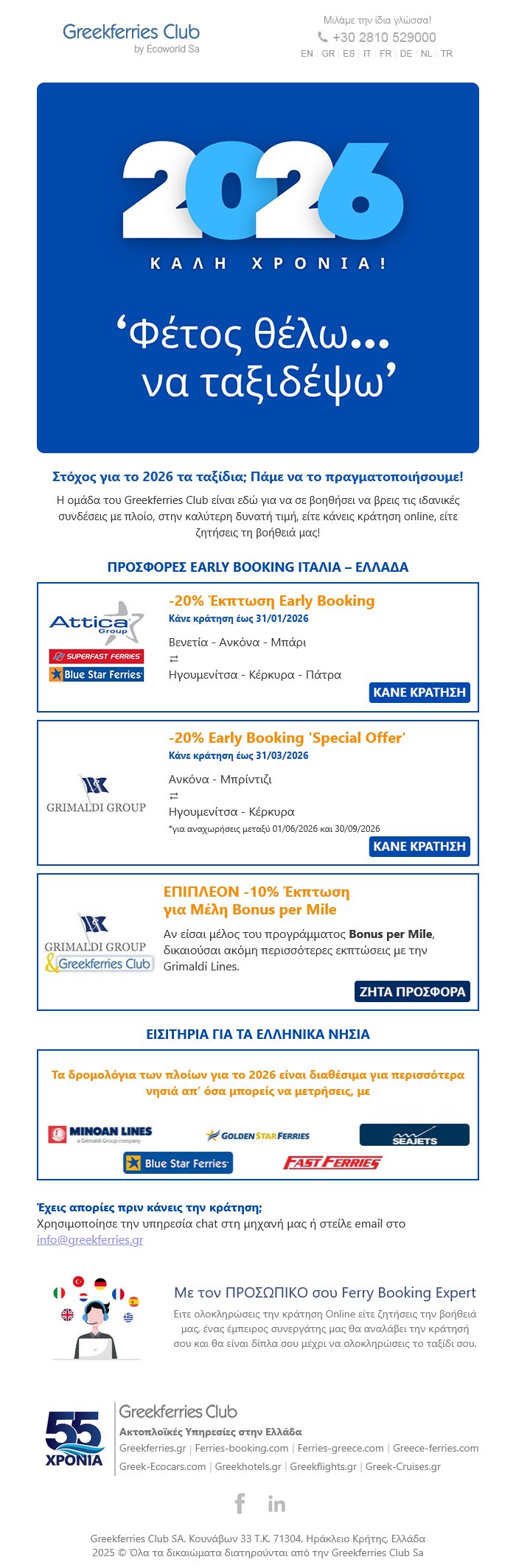 -20% Προσφορά Early Booking 2026 - Superfast Ferries - Blue Star Ferries