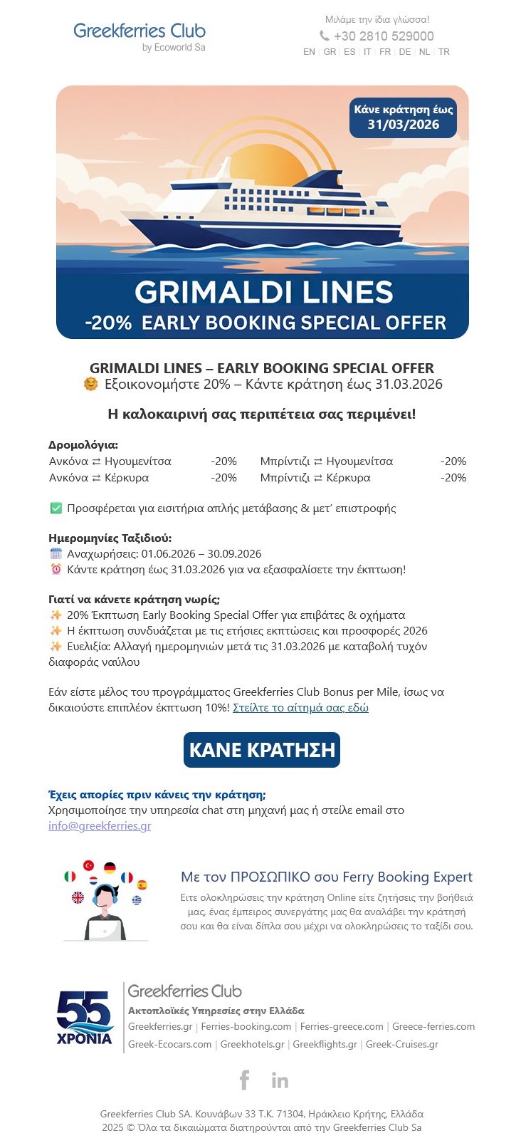 Προσφορά Black Friday με τη Grimaldi Lines – Κερδίστε 20%!