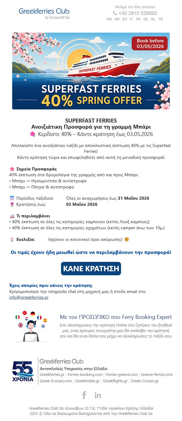 Sping Offer 40% με Superfast Ferries – Περιορισμένος Χρόνος!