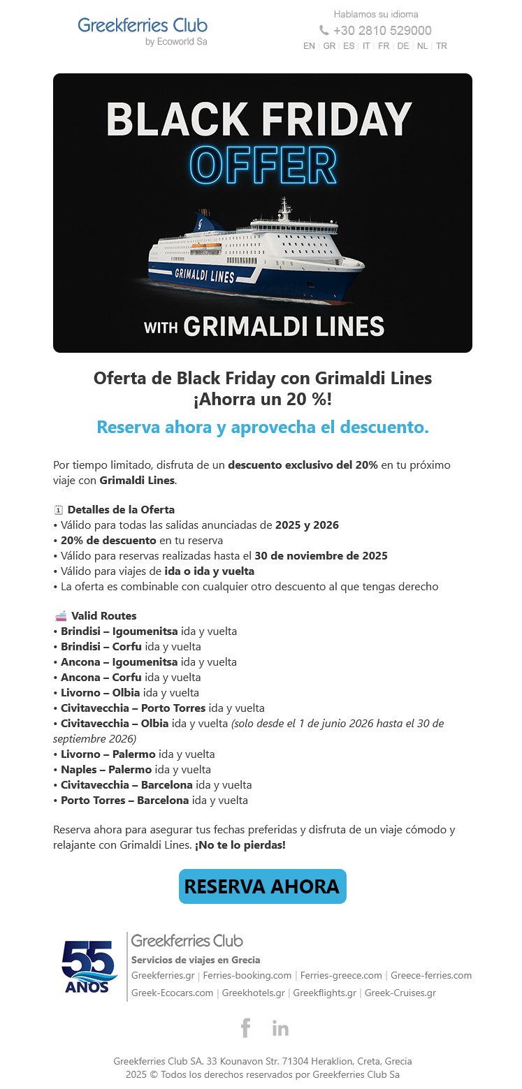 Oferta de Black Friday con Grimaldi Lines – ¡Ahorra un 20 %!