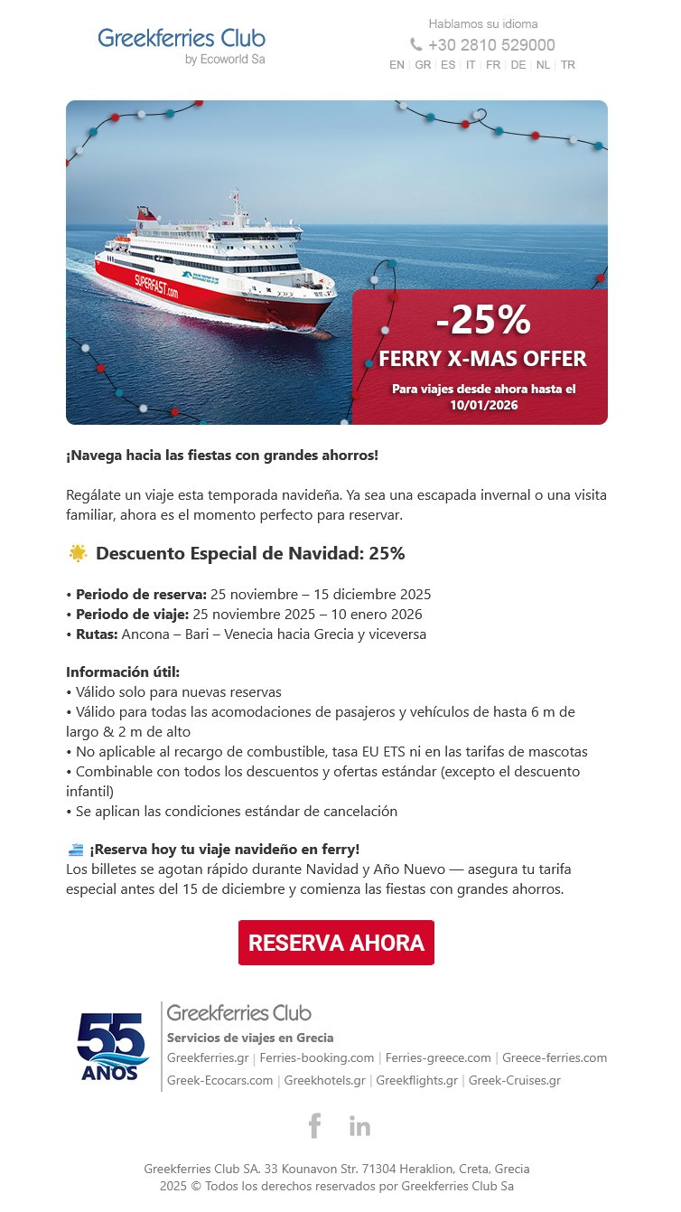 SUPERFAST FERRIES : FERRY X-MAS OFFER: -25%