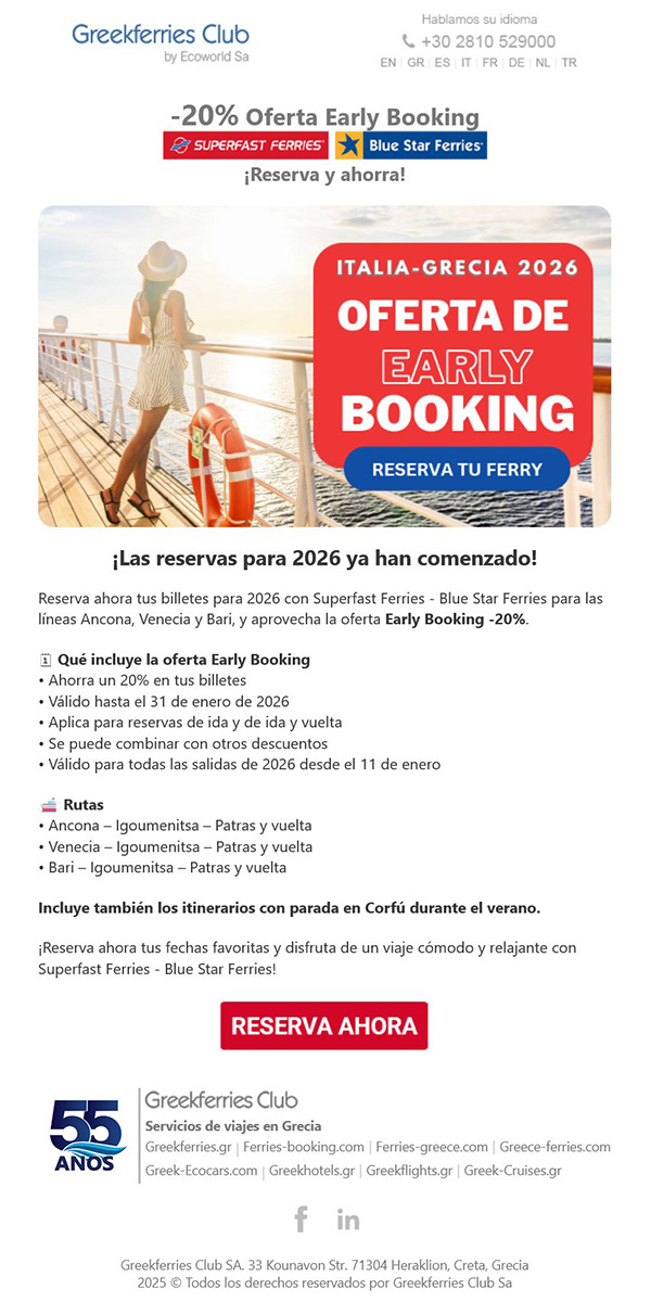 -20% Reserva Early Booking 2026 - Superfast Ferries - Blue Star Ferries