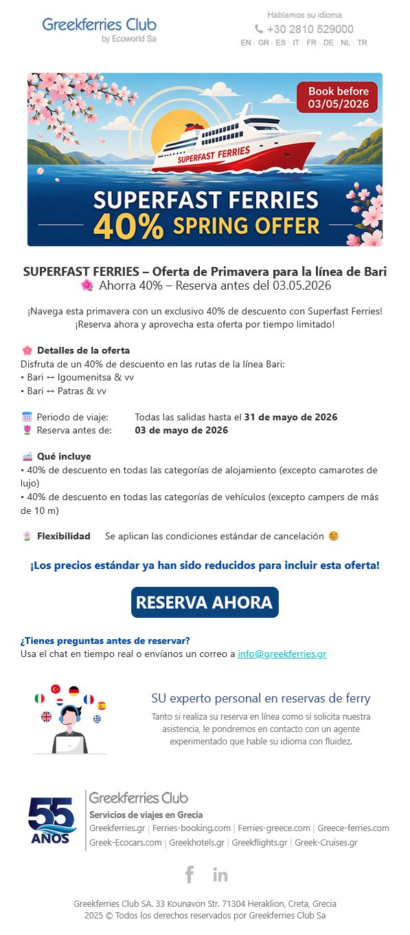 Oferta de Primavera 40% con Superfast Ferries – ¡Tiempo limitado!
