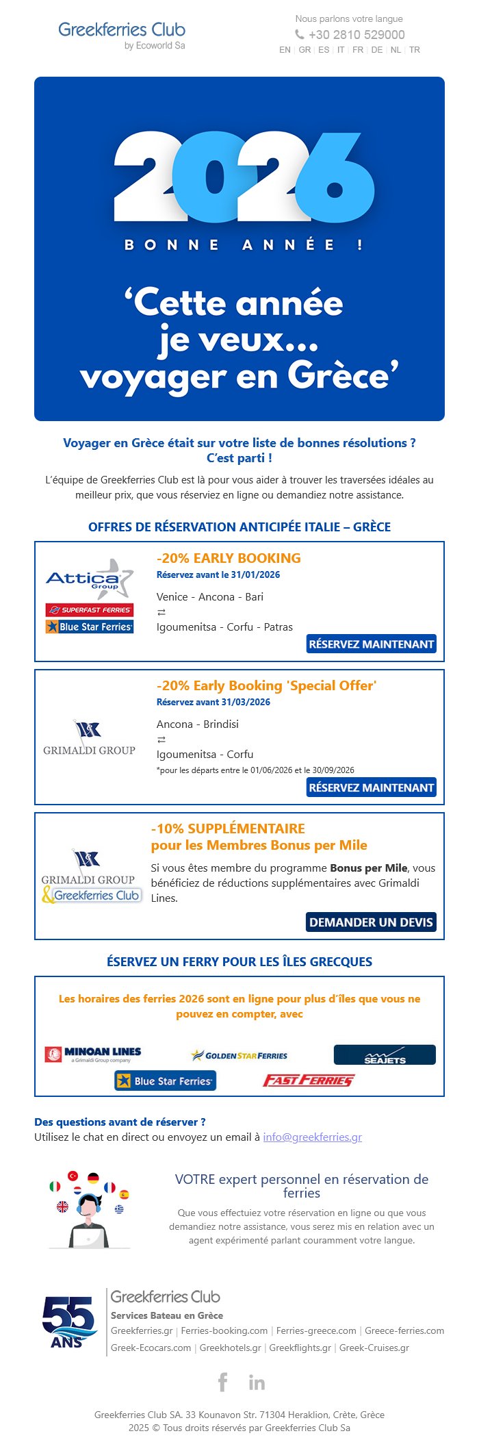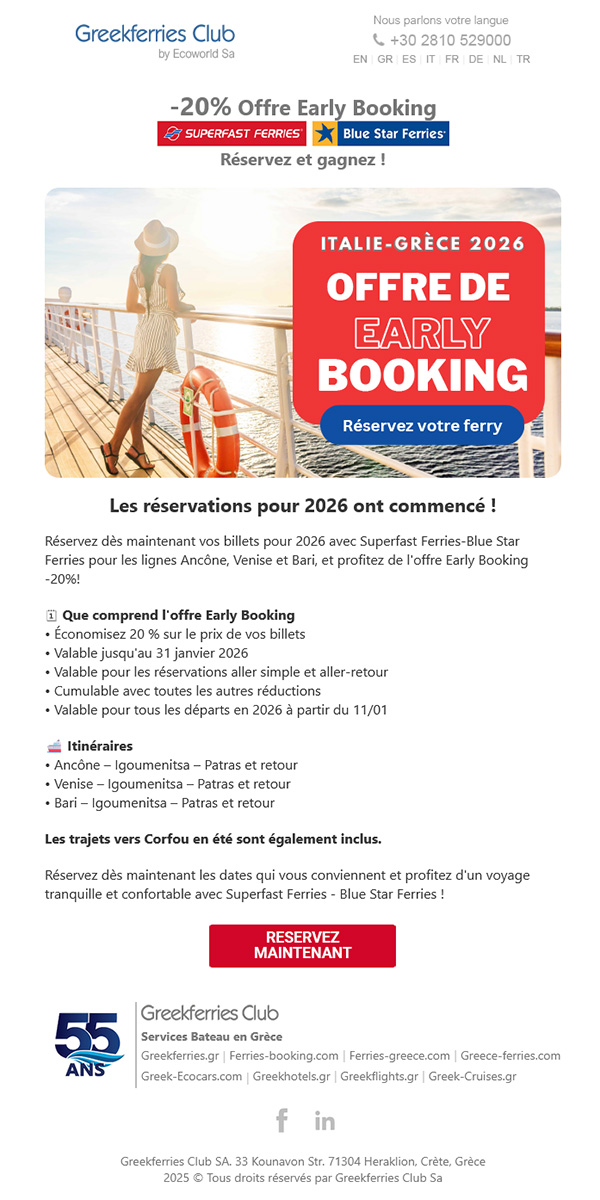 -20% Réservation Early Booking 2026 - Superfast Ferries - Blue Star Ferries