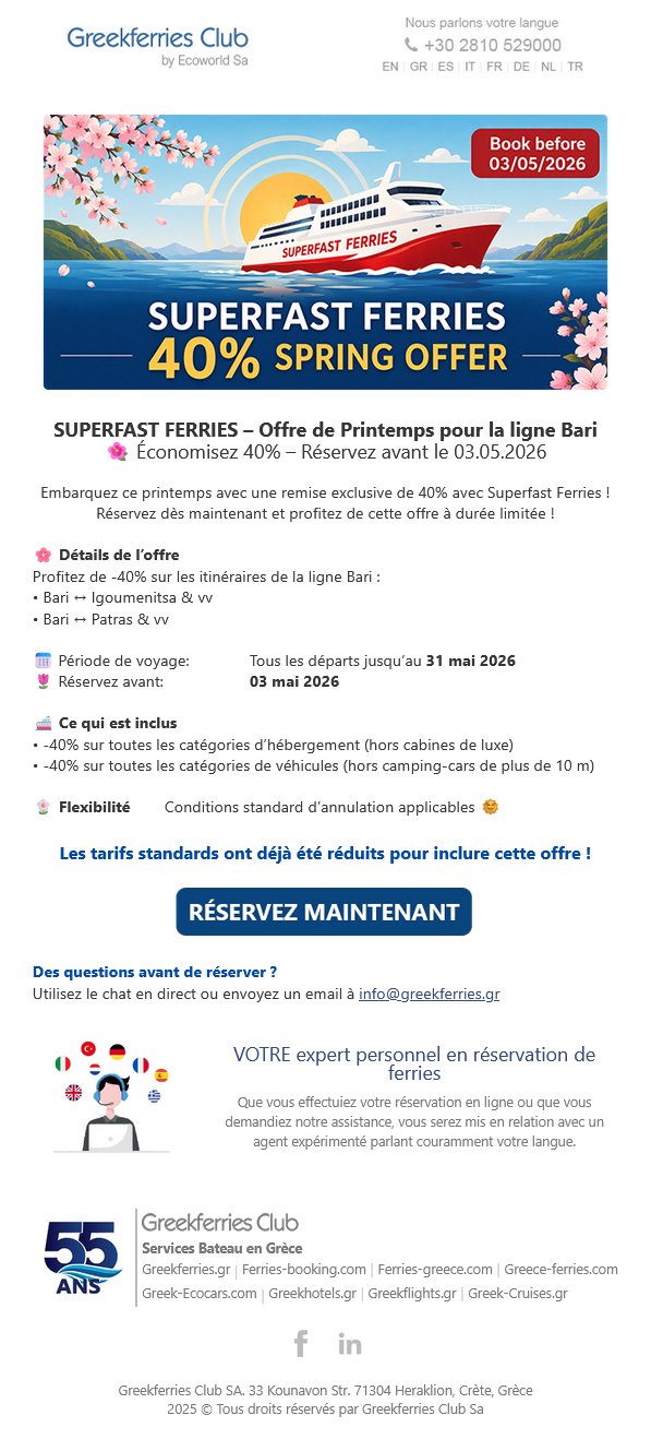 Offre de Printemps -40% avec Superfast Ferries – Durée limitée !