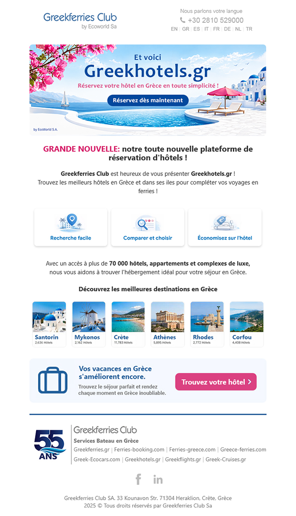 Greekferries Club se lance dans les réservations d’hôtels en Grèce!