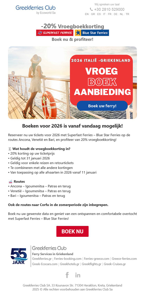 -20% Vroegboekaanbieding 2026 - Superfast Ferries - Blue Star Ferries
