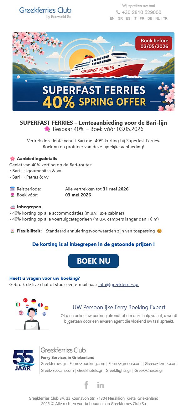 40% Lenteaanbieding met Superfast Ferries – boek nu tijdelijk!